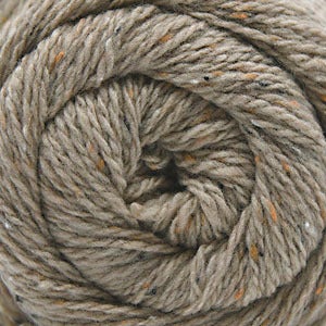 Woolen-spun organic wool with tweedy flecks creates a rustic yet sophisticated yarn with plenty of yardage for sweaters.