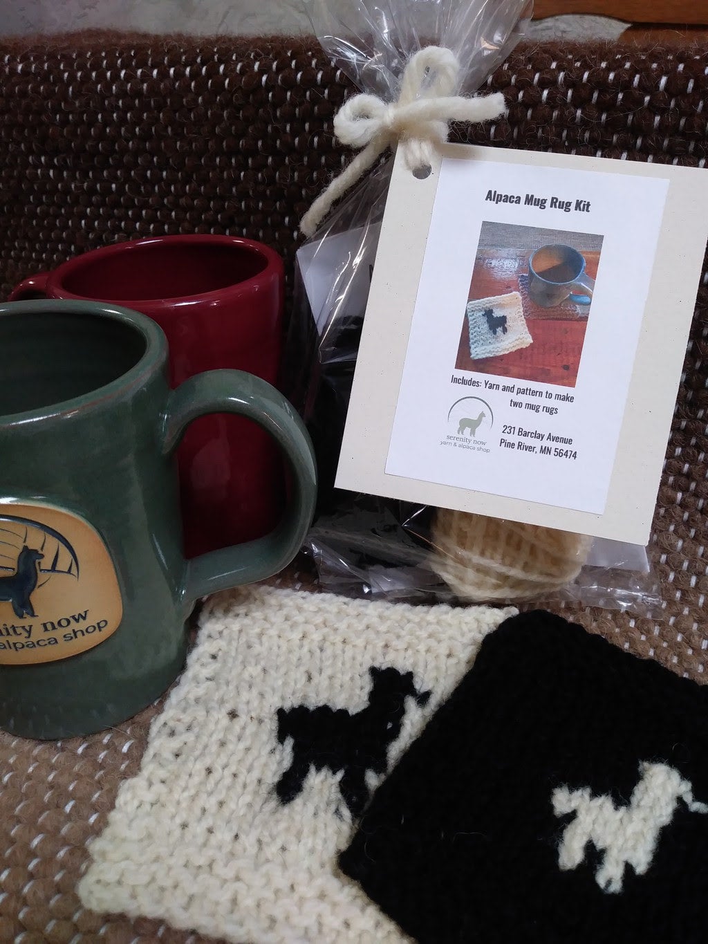 As an added bonus, make this a gift set for yourself or a friend by purchasing a Serenity Now Yarn and Alpaca Shop mug (usually $25) with the kit.