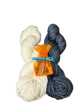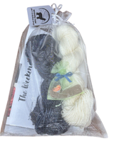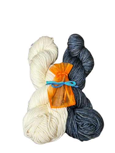 The kit has 2 colors of Malabrigo Rios about 50g of each color.