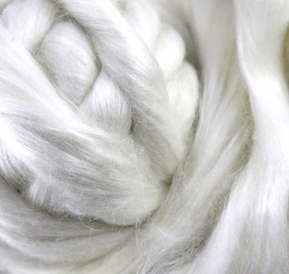 Note: Bamboo bast is processed differently than bamboo rayon. The process of bamboo rayon is similar to that of paper. The bamboo plant is ground to a pulp then extruded through a spinneret. As the pulp is spun, it becomes long strands that hardened and then either made into top or spun into yarn. The resulting fiber is super soft and silky and is lovely to blend with other fibers.