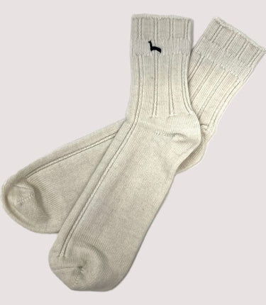 Super soft and wearable anytime - even to bed! Our best-selling Bed Sock is ankle-length and features a ribbon knit and contrasting embroidered alpaca logo.
