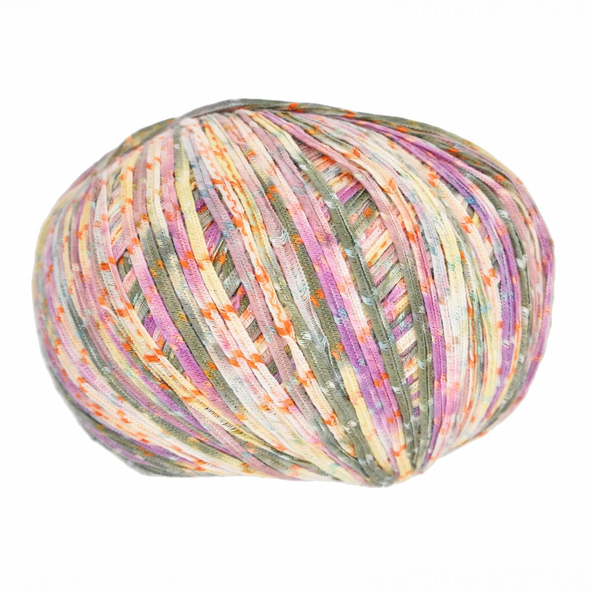 A soft ribbon-style yarn in a cotton blend that knits up at a worsted weight gauge, 4-5 stitches per inch on US size 7-9 needles. Available in just six carefully curated colors, each delicate multicolor blend is enhanced by speckles of contrasting color to create an almost polka dot effect. Don't miss the opportunity to see and feel Lirico in person. It is truly one of our more beautiful, romantic and unique yarns.
