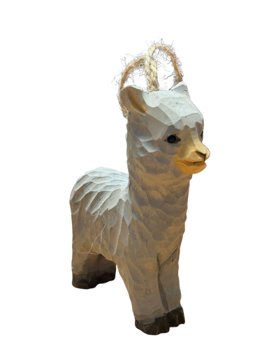 Hand Carved Wooden Alpaca Ornament