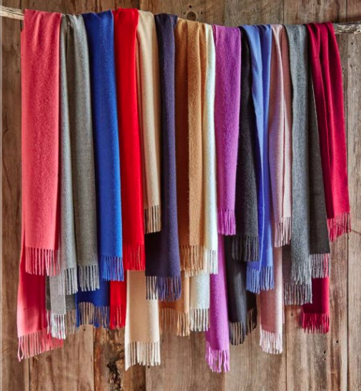 These superb woven scarves are made of 100% Baby Alpaca. Light, airy and soft to the touch. Available in an array of rich natural colors and dyed shades. Measures 12" X 63.5" with a 3" fringe.