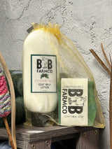 Gift sets contain matching Goat Milk Soap and Goat Milk Lotion in a beautiful gold organza fabric bag with silk ties. Great for Holiday gifts or any occasion.