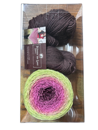 Kit includes: 1, 4oz gradient Blossom AND 1 coordinating 4 oz skein, both on Mad Hatter sport (100% superwash merino) presented in a clear box with pattern download card.