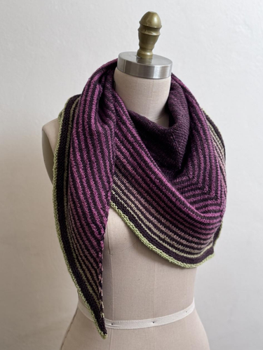 This top-down triangle shawl is simple to knit but never boring. The Blossoms’ seamlessly shifting gradient keeps the colors interesting, turning every row into a surprise. The result is a beautiful, effortlessly knit shawl that is easy to style.