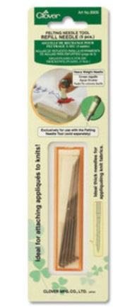 Heavy weight needles ideal thick needles for appliqueing knit fabrics. 5 pieces per package with a case for safety. Exclusively for use with the Needle Felting Tool (Art. No 8900).